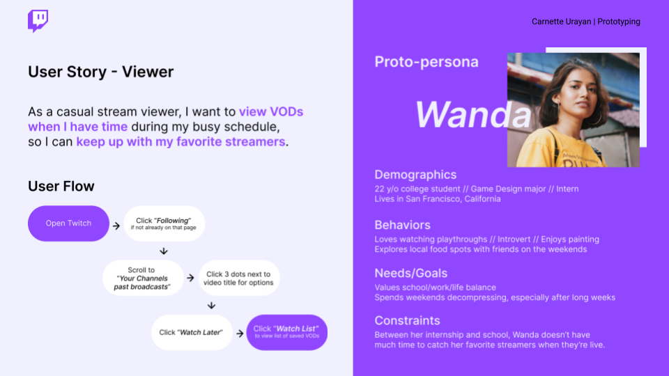 To empathize with the target audience, identify opportunities, and understand their natural flow through Twitch.